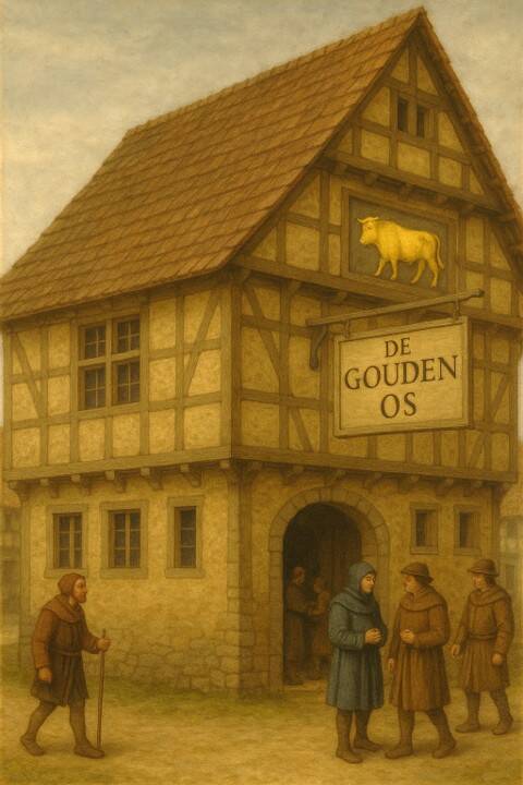 Een herberg die mogelijk in de 14e eeuw bestaan heeft was herberg “De Gouden Os”. Deze herberg was gelegen aan de rand van een drukke handelsroute in een middeleeuwse stad in de Nederlanden. Het was een robuust stenen gebouw met een rieten dak en een houten uithangbord met een glanzende gouden os als teken van rijkdom en overvloed. De herberg bood naast overnachten ook de mogelijkheid om te eten of om je te wassen. De herberg bood verschillende opties voor slaapplaatsen. Reizigers konden kiezen uit gemeenschappelijke slaapzalen met ruwe houten bedden en strozakken voor 2 grooten per nacht. Of een privékamer voor 5 grooten per nacht voor degenen die wat meer comfort wensten. Deze kamers waren voorzien van een eenvoudig houten bed met linnengoed en een wollen deken.