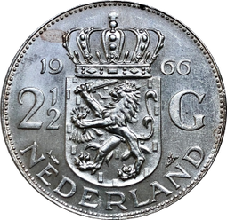 Een rijksdaalder van Juliana uit 1966 met een koopkracht vergelijkbaar met ongeveer 10 euro in 2025.