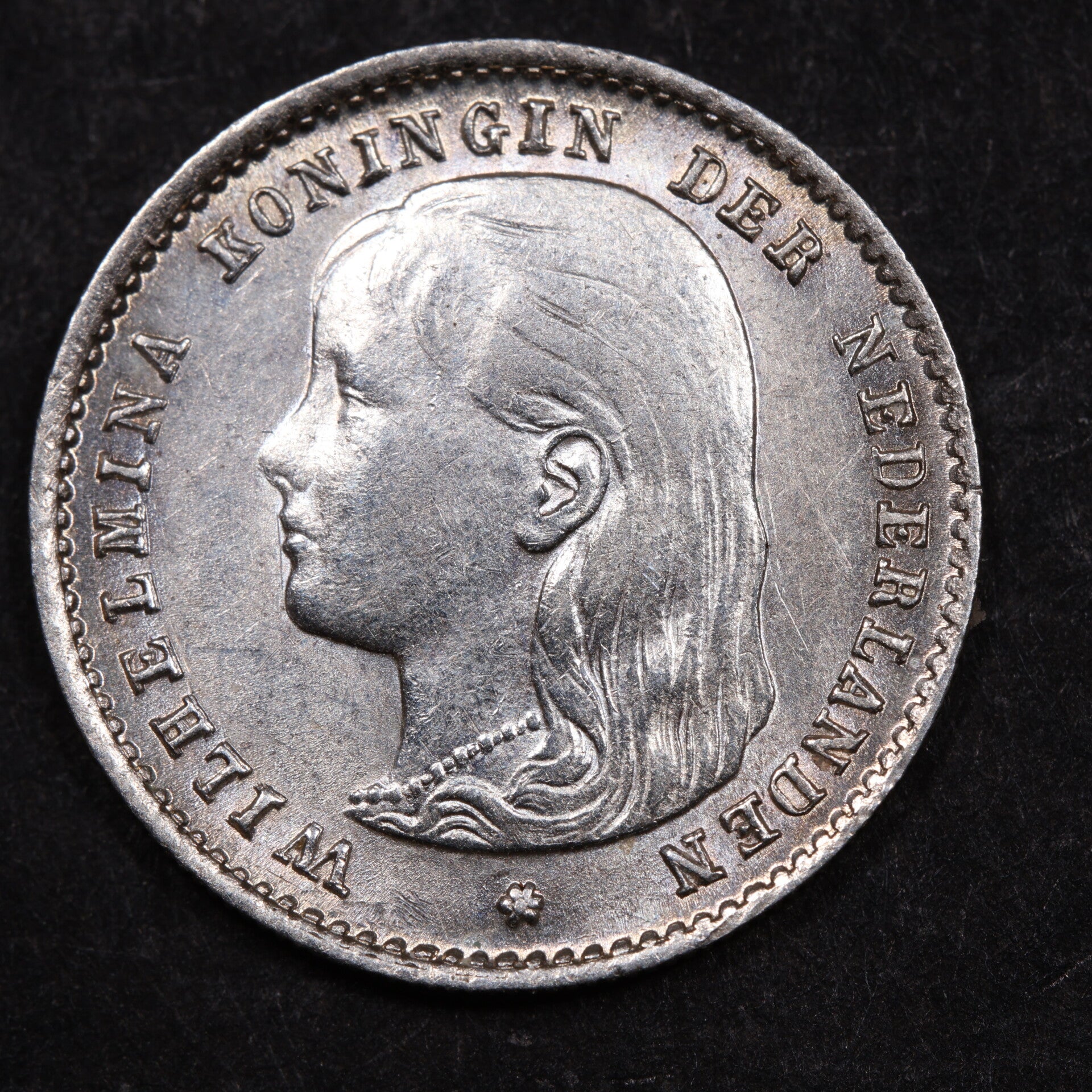 Mooi dubbeltje Wilhelmina met hangend haar.