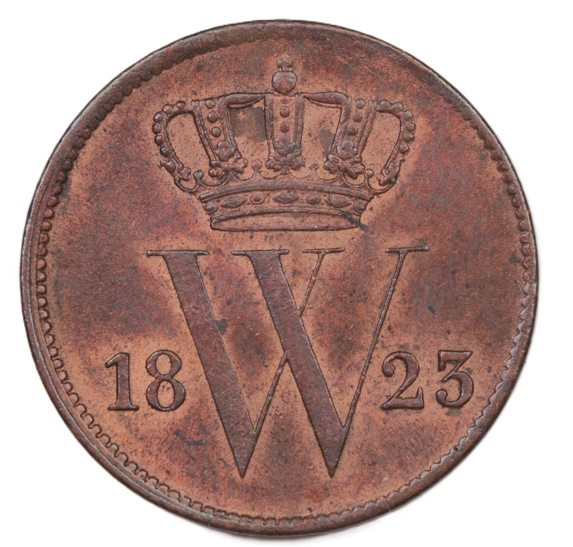 Schitterende cent 1823 Utrecht met originele muntglans. Zeldzaam in deze prachtige kwaliteit.